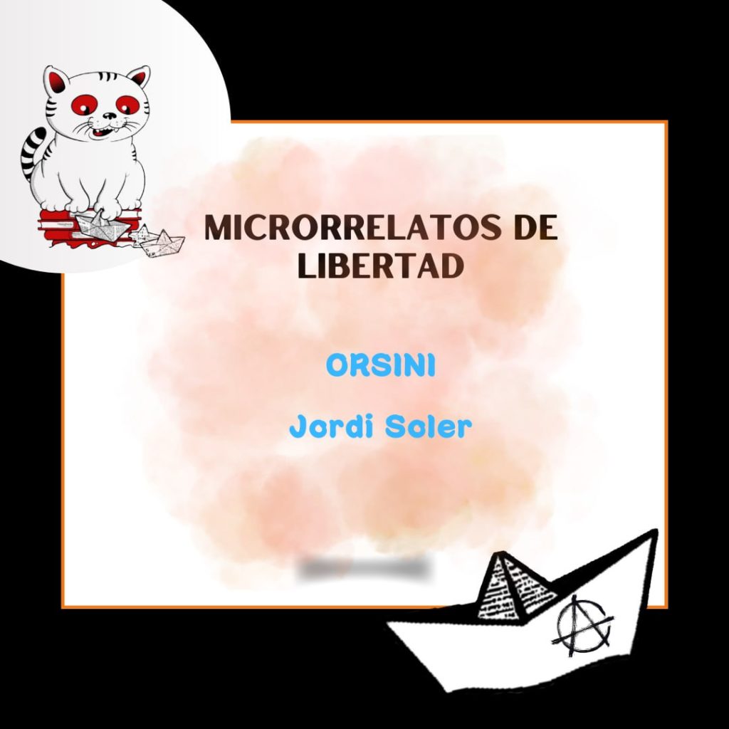 El manojo de trapos lo llevaba dentro de un zurrón, en bandolera. La subida por las empinadas calles del Poble Sec se me hizo pesada. Llegué a los huertos jadeante. Los pinchos de los artefactos se marcaban en la ropa que los envolvía. Llevaba tres. ¡Que fuera con mucho cuidado con los pequeños resaltes que sobresalían de las bolas de hierro!, había sido el consejo que me habían dado. Las Orsini eran las bombas más modernas, puesto que explotaban por el impacto de alguno de aquellos salientes contra algo sólido. Eran más seguras que la dinamita.